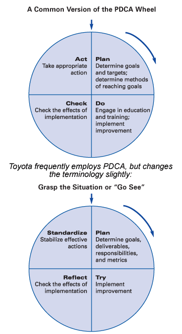 In 1951, the Japanese Union of Scientists and Engineers (JUSE) altered Deming’s framework into the more recognizable PDCA cycle. Although well over half a century has passed since the introduction of the Deming cycle to executives in Japan, most open-ended approaches still seek to repeat learning cycles as rapidly as possible, for obtaining customer feedback and making improvements in all pertinent areas.